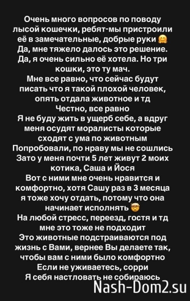 Александра Черно объяснила, почему отдала в добрые руки кошку породы сфинкс.