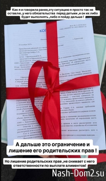 Вчера Юлия Ефременкова получила на руки два исполнительных листа по делу об алиментах.